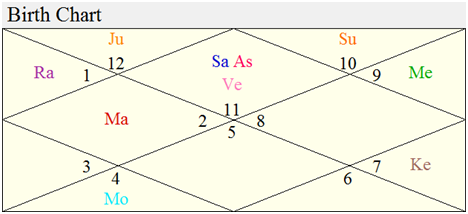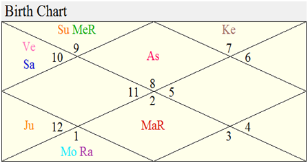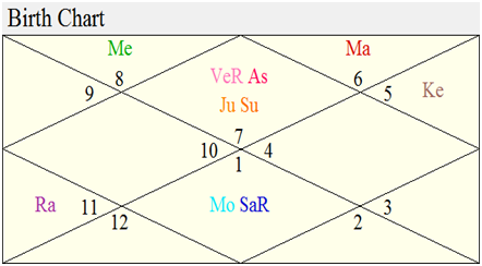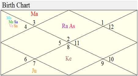 The dasha was Moon / Rahu / Venus. Moon as the 10th lord is in the 7th house the house of war with the afflicted  Saturn, which is debilitated,   as the 4th and the 5th lord,   having a joint aspect of both the transiting Mars  and the original Mars from the 12th house. Moon has the aspect of 6th lord Jupiter showing loss and despair. Rahu as the antar dasha lord is in the 5th house, again a very important house as per mundane astrology as discussed earlier in his brief. Rahu has to give its results as pert its dispositor which is debilitated Saturn placed in the 7th house with Moon, having an aspect of the 6th lord Jupiter from lagna,  thus causing affliction to Saturn and Moon placed in the 7th house. Venus is the  lagna lord which is heavily  afflicted as explained earlier in this astrological brief.  So this dasha was equally responsible fro such a disaster coupled with the transiting position of Saturn, Mars and Rahu.